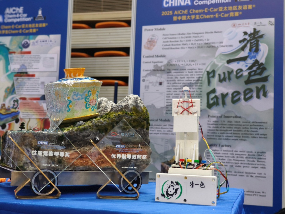 2025年8月10日至11日,由中国化工学会主办的第九届“aiche chem-e-car亚太地区友谊赛暨中国大学生chem-e-car竞赛”于天津大学成功举办。我院学生黄小峰、赵国江、刘庭锐、周俊竹、刘霞、赵思佳、杜天翔代表的“四川大学清一色车队”,在本次赛事的37支国内外队伍中勇夺桂冠,成功摘得性能竞赛特等奖,吴振国老师、王缘老师获得“优秀指导教师奖”。