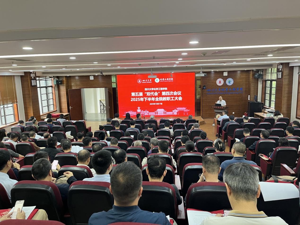 10月17日下午,化学工程学院在313报告厅召开2025年下半年全院教职工大会。学院党委书记李天友、院长郭孝东等全体院领导,工会主席、专职组织员,学院“双代会”代表和全体教职员工参加会议。大会由李天友主持。