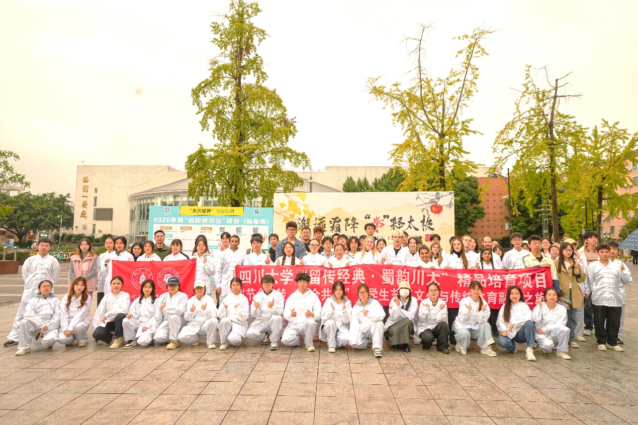 为传承中华优秀传统文化,弘扬太极智慧,促进中外学子交流,由四川大学留学生管理办公室“留传经典·蜀韵川大”精品培育项目资助立项,四川大学化学工程学院与留学生管理办公室共同主办的“节令流转,和合共生”留学生节气文化与传统体育融合之旅,于2025年10月24日在四川大学江安校区青春广场举办了“邂逅霜降,“拳”释太极”主题太极活动,来自多个学院的留学生和本校本、硕、博学生共同参与。