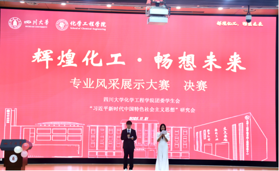2025年11月21日下午,四川大学化学工程学院2025年“辉煌化工·畅想未来”专业风采展示大赛决赛在江安校区水上报告厅隆重举行。学院党委书记李天友老师、副院长唐盛伟老师,班主任戴一阳、葛黎明、黄胜、李红娇、孙巧媚、周兴龙、邱浪、陈亭儒老师,以及学院团委书记李珍珍老师、学生科科长帕哈尔定老师、辅导员李忆雯、付率和袁玲老师出席了本次活动。大赛通过多元化的展示形式,进一步提升2025级新生对化工专业的认识和 ,现场氛围欢快热烈,班级展活力四射。
