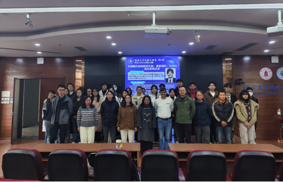 2025年12月15日下午,由四川大学科学技术发展研究院和化学工程学院联合主办,生物工程教研室承办的四川大学卓越大讲堂(第13期)暨“化工学术大讲堂”高端学术报告(120期)在化学工程学院313会议室成功举办。此次学术报告的主持人是我院的陈靖副教授。参会师生共计30余人。